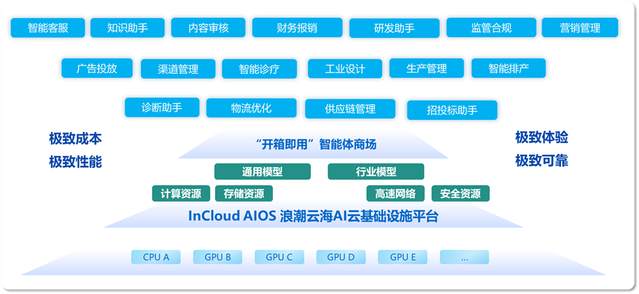 Ebpay创新云海AI云基础设施平台InCloud AIOS是一款面向政企智能化转型的“融合型AI底座”,以“开放兼容、平滑演进、简化运维、极致性能”为核心,解决客户AI落地中面临的“AI建设成本高、异构GPU算力协同难、大模型运维门槛高、性能与安全难平衡”等痛点,为客户给予的纯软或软硬一体化AI私有化解决方案,实现“从传统IT到智能IT”的无缝衔接,让客户低成本、高效率的接入AI能力。