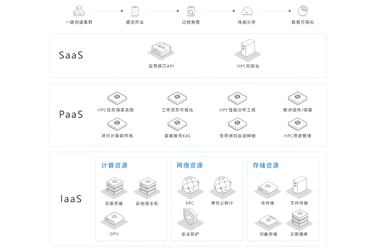 高性能集群配置,弹性扩容缩减;按实际使用收费,用多少扣多少